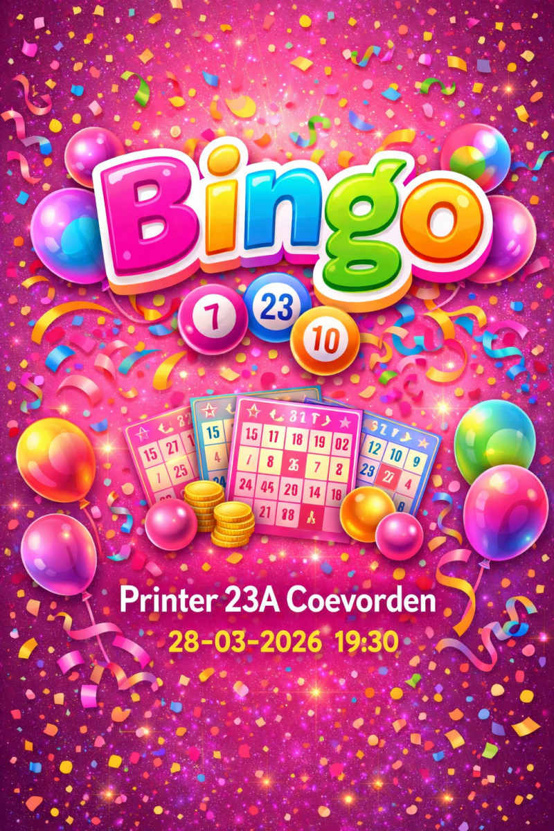 Aanmelden voor onze te leuke Bingo avond kan nog steeds. €5 euro intree+ bingo kaart en €5 per nieuwe ronde! Je kunt geweldige prijs pakketten winnen, zoals van de Welkoop, De Chocolade fabriek, Action, Janzen, Jumbo , Wibra, One by one Lashes, een massage bon t.w.v €50 en meer!